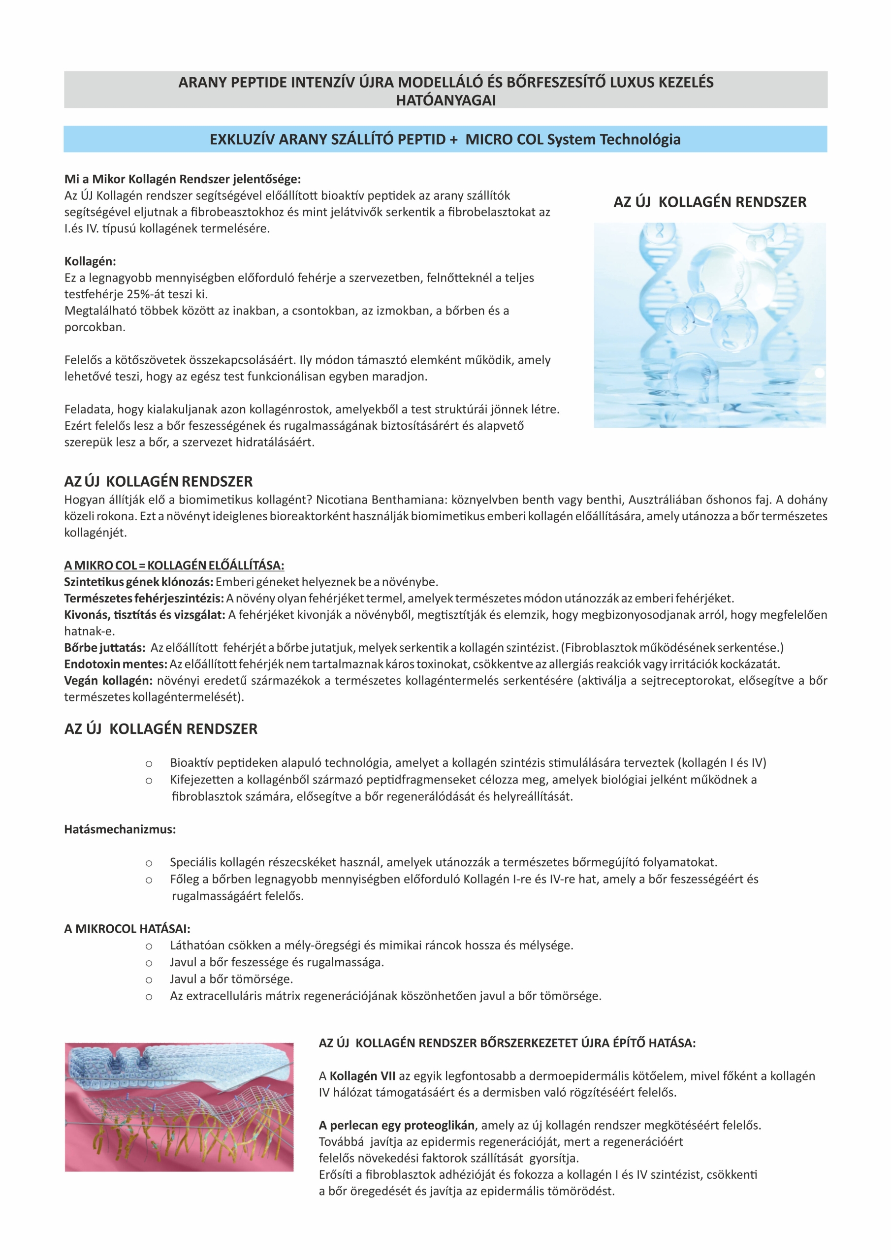 A legújabb orvos-esztétikai kezelés során nanotechnológia segítségével az aranyat -és a gyémántot használjuk fel arra, hogy a Micro-Coll System segítségével a legértékesebb sejtregeneráló, kollagén rostokat képző összetevőket juttassuk el a sejtekig és serkentsünk a bőrfiatalító folyamatokat, jelentősen feszesítsük a bőrt.